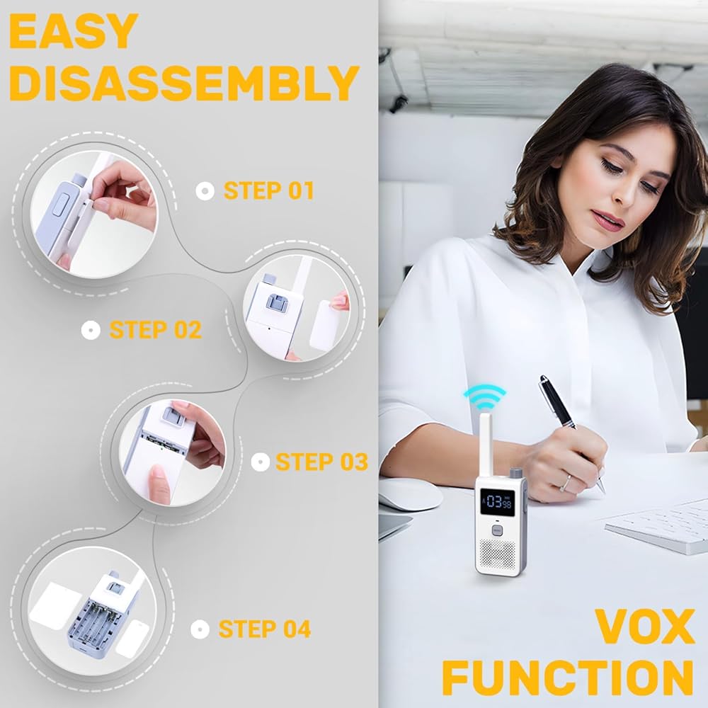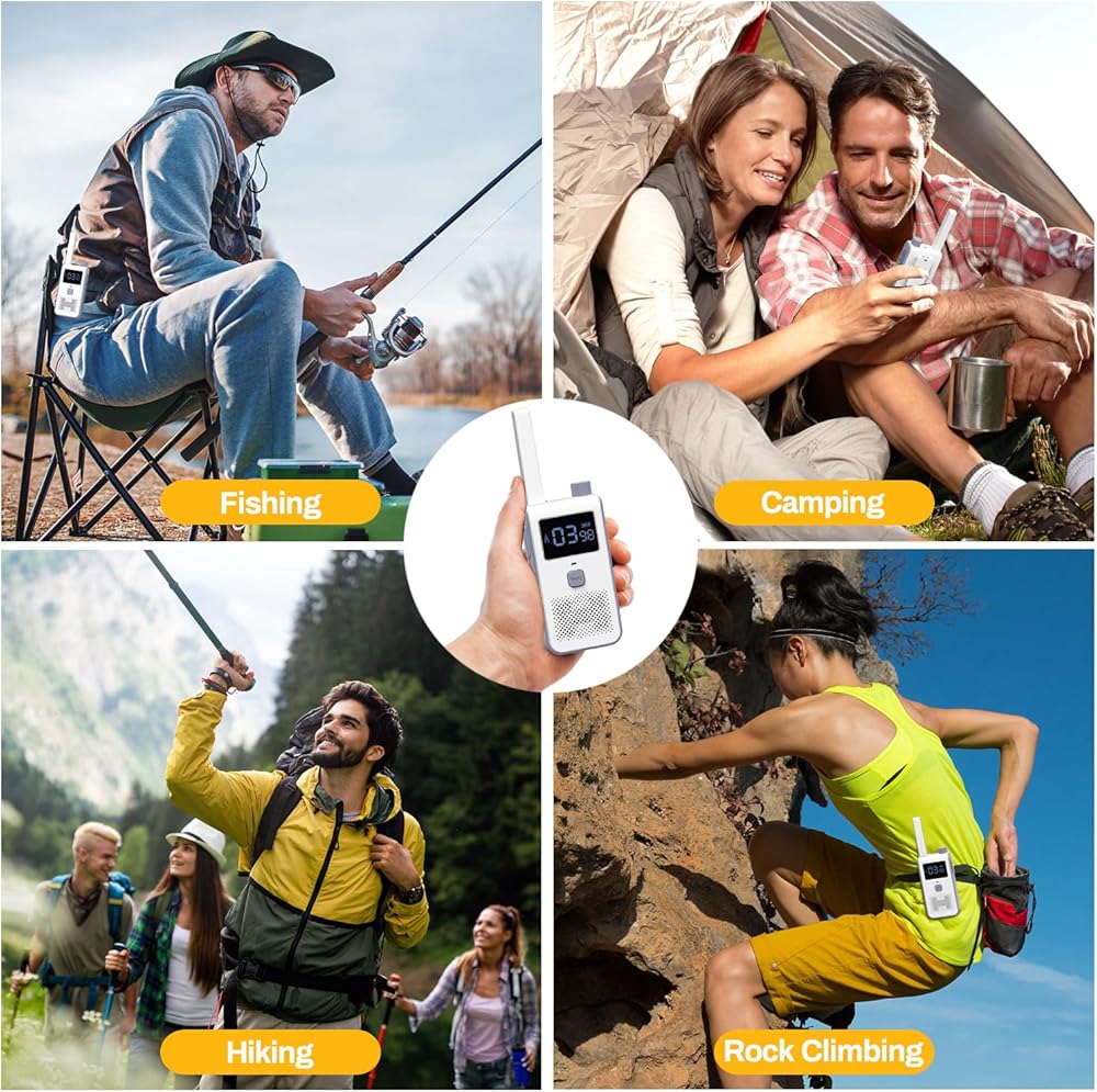 Hands Free & Belt Clip - When you are climbing, Turn on the Voice and Sound Activation (VOX) system with 3 sensitivity levels. Also has belt clips that can let your walkie-talkies hang on your backpack shoulder strap. Available to free your hands and chat all the way.