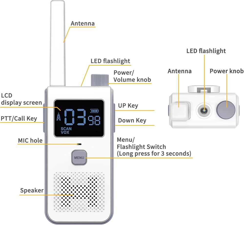 Convenient Knob Switch Design - The simple design on top of the walky integrates the switch and volume into a rotary switch to quickly adjust the volume of your walkie-talkie anytime and anywhere.