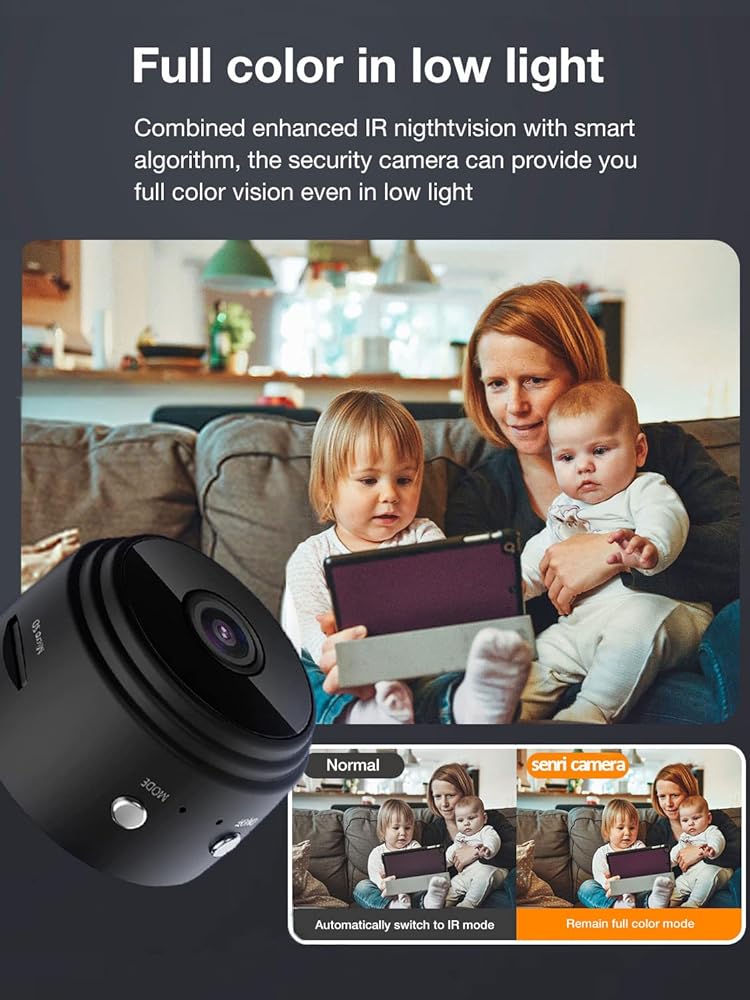 [2022 Version WiFi Camera] senri mini wireless camera is the latest product in 2022, supports iOS and Android devices, download the APP and connect it to the network, you can view live video on the App from anywhere in the world. The video can be save in the micro SD card, you can view the material on phone, pad, computer.