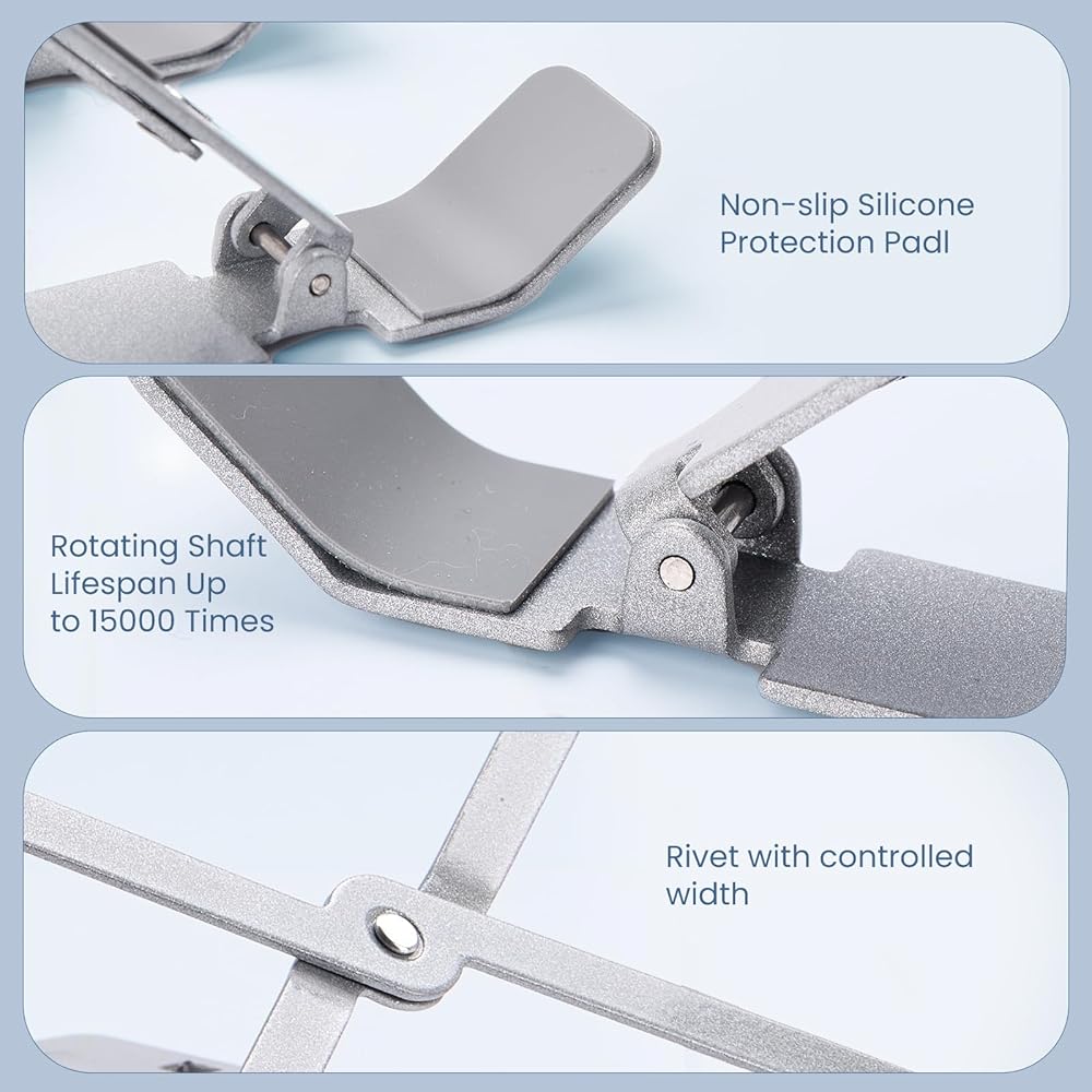 Sturdy and portable - The computer stand is totally made of thickened aluminum alloy, so the stand is sturdy. The rubber on the holder hands sticks tightly and ensure your laptop stable on the stand. And the rubber feet prevent the stand from slipping on your desktop.