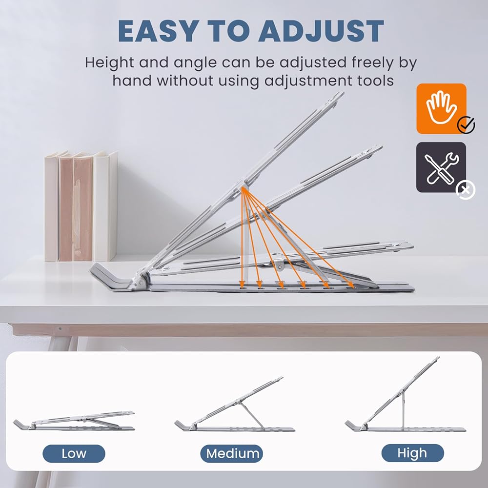Ergonomic Design - This Laptop Stand could elevate your laptop by 6" to a perfect viewing level, 12 heights for you to choose,help you improve your posture and reduce neck and shoulder pain. This bracket can bear up to 88 pounds, can be stable fixed in one position, strong and reliable, easy to use!