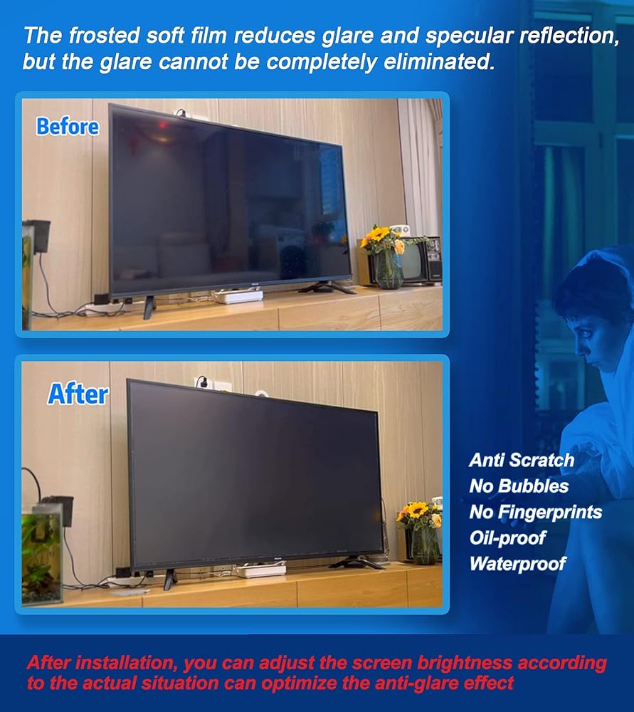 TYRHMY Anti Glare TV Screen Protector for 50 Inches LCD, LED etc, Out Blue Light, Anti UV Relieve Eye Strain, New Upgrade Frosted Surface Anti Scratch, No Bubbles,50 Inch Narrow