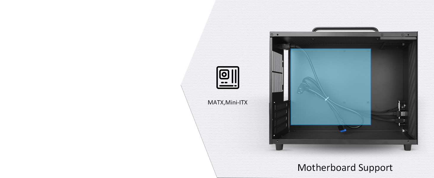 【High expandability】Motherboard Support: Micro ATX / ITX, GPU clearance: 335MM, CPU cooler height: Max 135MM, PSU support: Standard ATX / SFX, Support 4 PCI expansion slots, support max 92*92*25mm fans *6, support max 2.5" SSD *5.