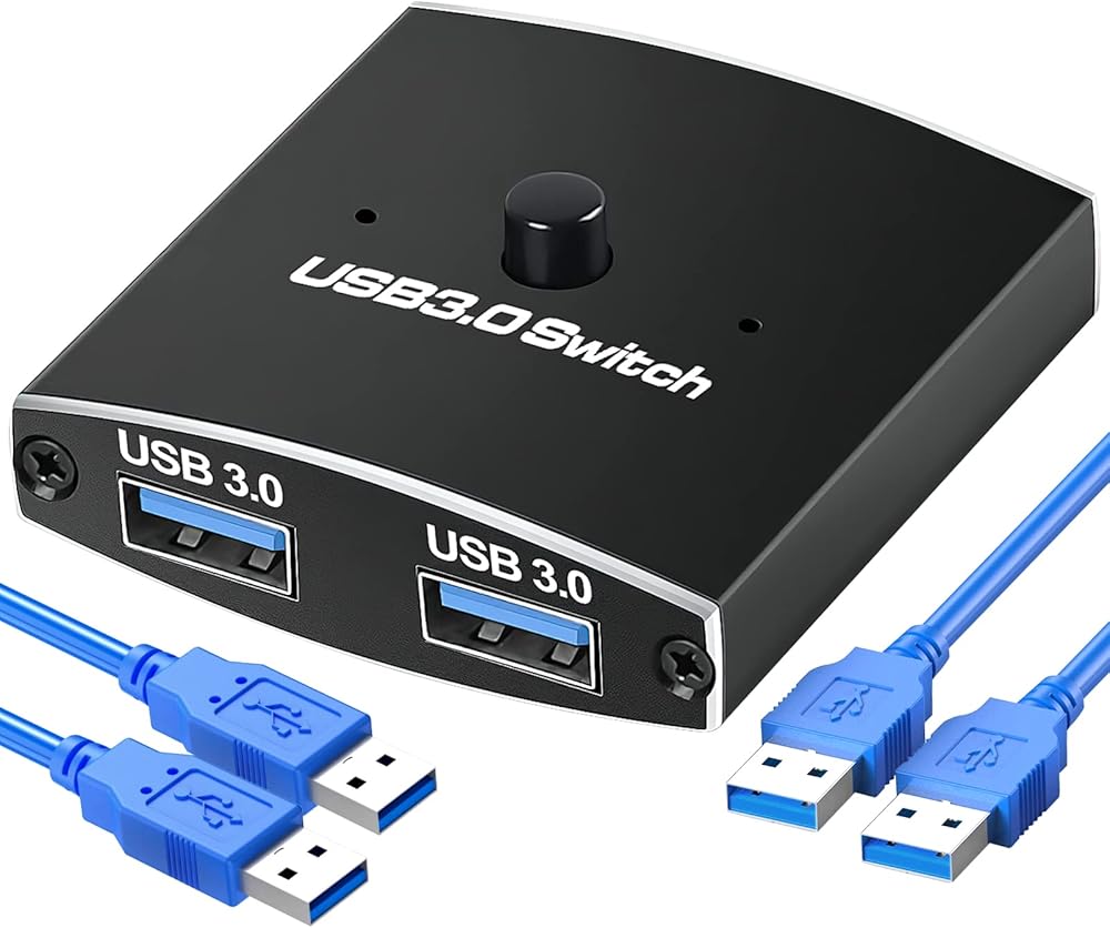 USB Switch 3.0 KVM Switch,Bi-Directional USB Switch Selector 2 in 1 Out/1 in 2 Out,Hdiwousp USB Switcher 2 Computers Share 1 USB Devices for PCs Mouse Keyboard Printer Scanner (with 2 USB 3.0 Cables)
