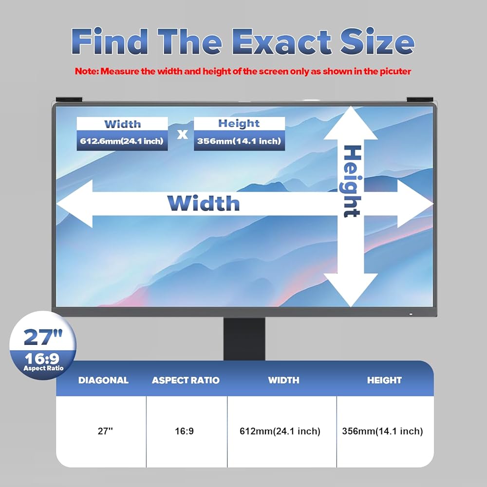 【Perfect for 21.5 Inch Monitor】: The computer privacy screen filter perfectly fits for 21.5 inch widescreen monitor with an aspect ratio of 16:9. To determine the right size of your screen, measure the height and width of your screen without the boarder. If you have any problems with the size, please contact us directly.