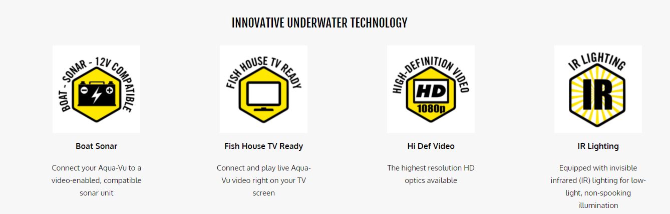 Add real time “live” viewing to any TV or HDMI-in enabled compatible sonar using an Aqua-VU Multi-Vu Pro Gen 2 Underwater viewing system