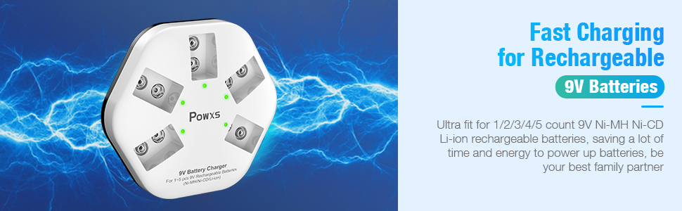 Whitenergy شحن فائق السرعة: يمكن شحن البطاريات القابلة لإعادة الشحن 9 فولت حتى 750 مللي أمبير ويمكنك شحن بطاريات ليثيوم أيون NiMH NiCD القابلة لإعادة الشحن بحرية 1-5 9 فولت في نفس الوقت.