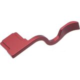 The red-colored thumbs up grip is a bright add-on to your camera.