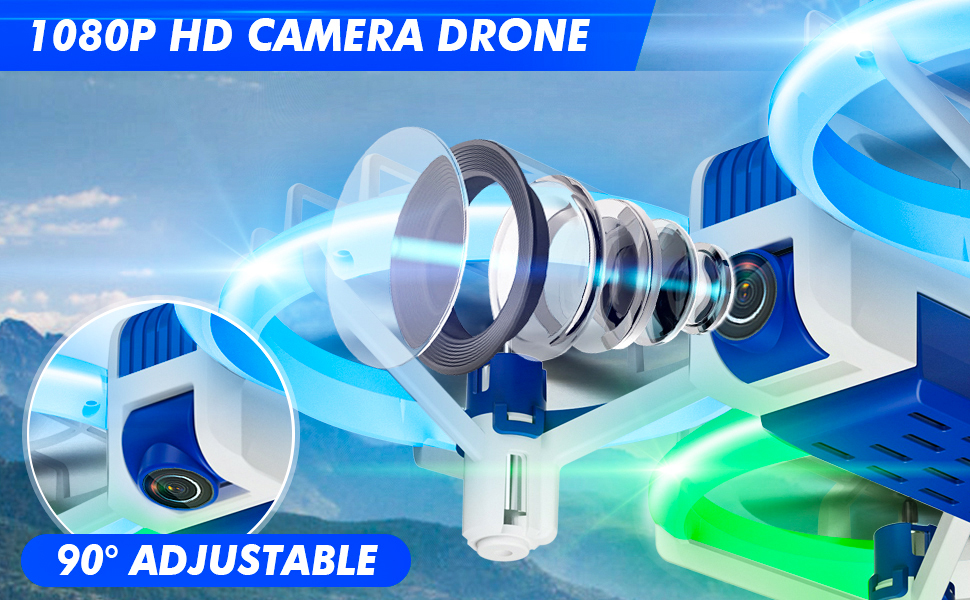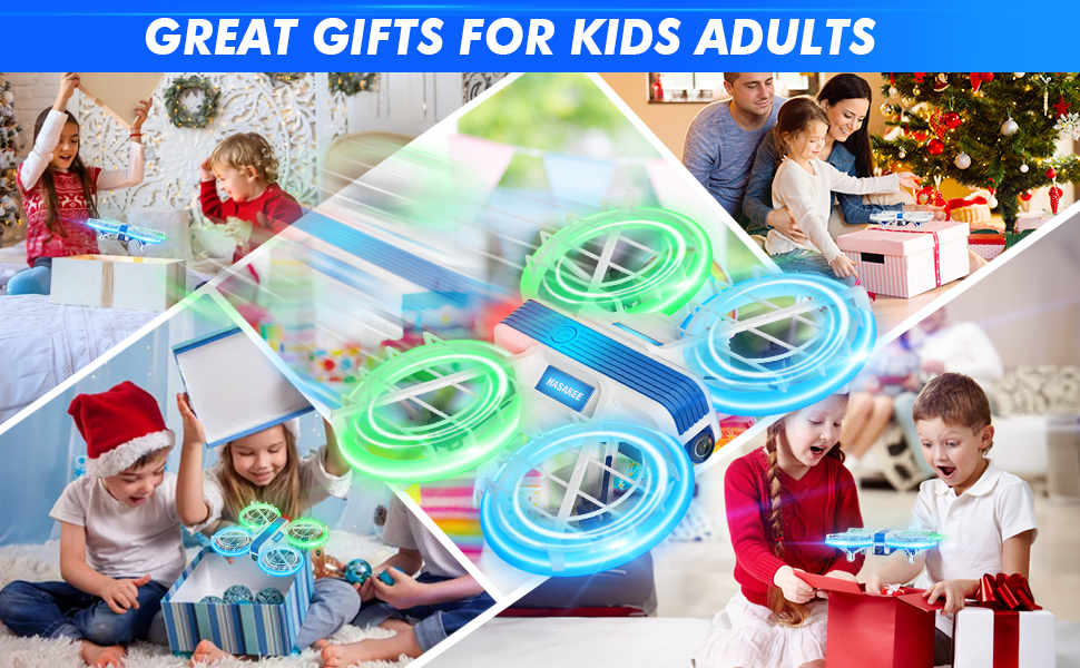 【Vibrant Blue-Green LED Lights】The four frames of the mini quadcopter are equipped with ultra-bright green and blue LED to light up the sky with every flight. It looks super cool at night and during the day. 4 different lighting modes to increase the fun of flying at night. The different color lights in front and back of the drone can also help you easily judge the direction at night.