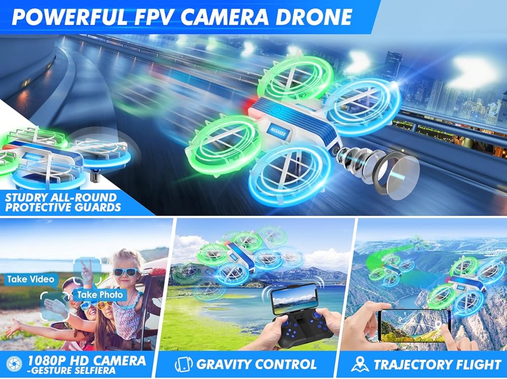 【Safe and Durable Toy Drone】Powerful protection is a unique feature of the M1S compared to other drones on the market. All-round sturdy propeller guard ensures a secure flight which protects your kids to avoid injury from spinning propellers as well as protect the propellers and motors from being collided. Safe and Durable Camera Drone.