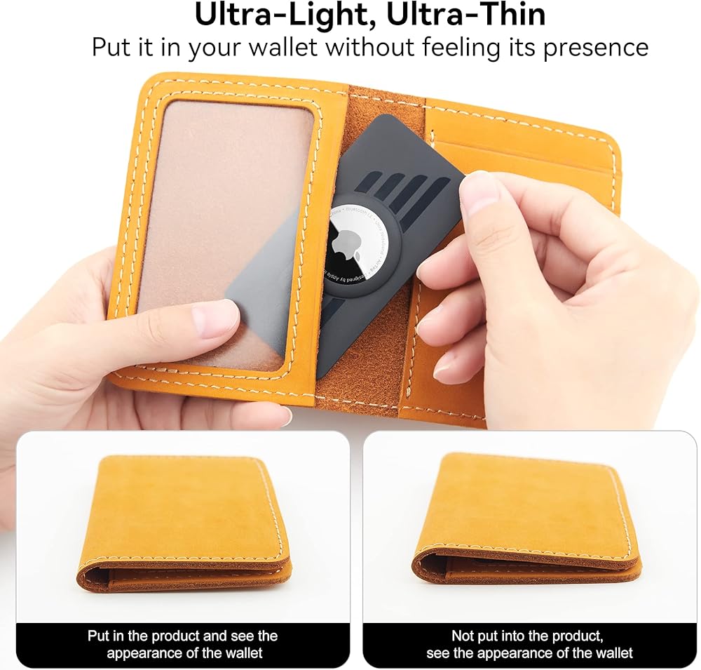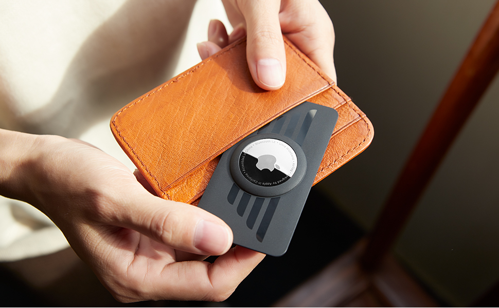 ✅【EASY TO USE】Just press the Airtag lightly into the Airtag Wallet Card Case, and Airtag can be easily put into the wallet like a credit card.