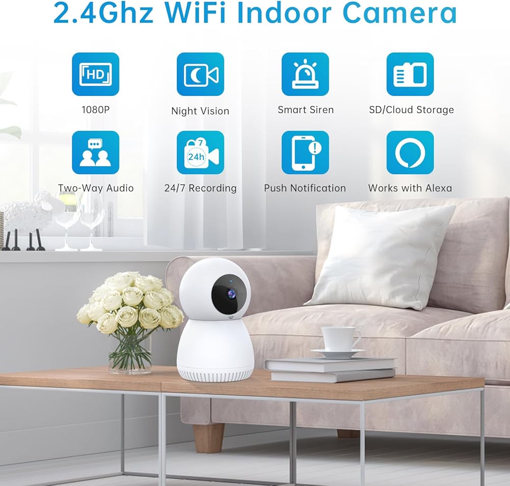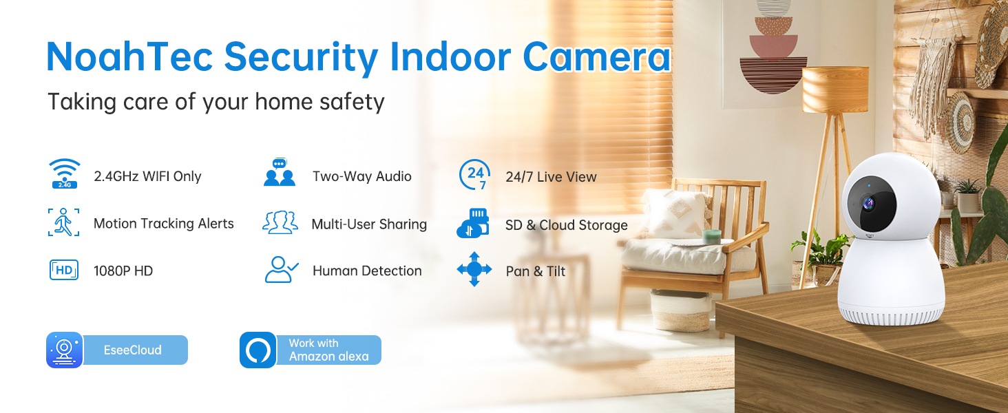 NoahTec Indoor Camera, 1080P 2.4GHz Pet Camera Baby Monitor, 360° Cameras for Home Security Indoor, Dog Camera 24/7 Motion Detection, 2-Way Call, IR Night Vision,Siren Alarm, Works with Alexa