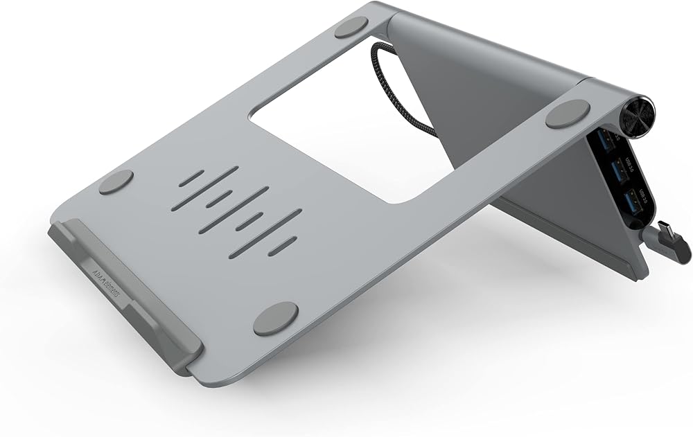 PERFECT LAPTOP STAND HUB FOR USB-C DEVICES - Supports macOS, iPadOS system, Windows 10, Chrome OS, Linux, and the devices supported are USB-C MacBook, USB-C Laptop, USB-C iPad & USB-C Tablet.