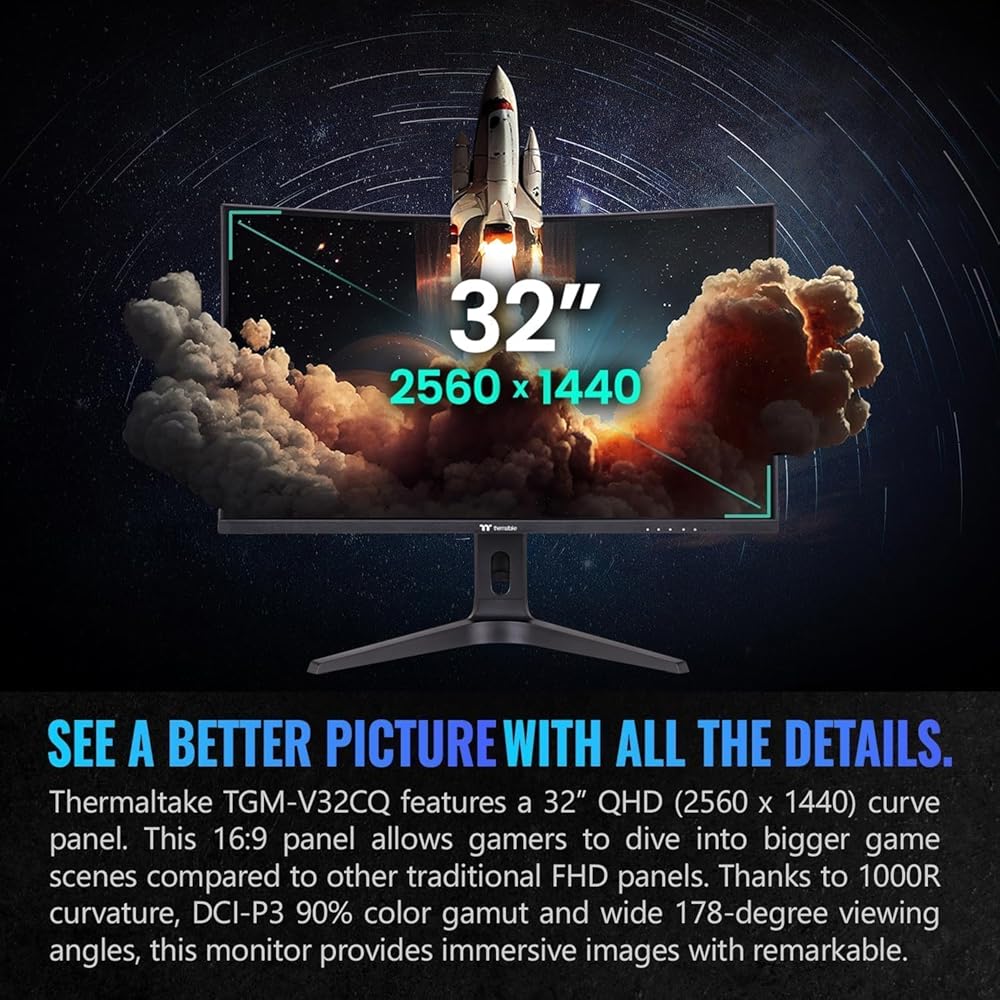 Thermaltake Glacier 460 Gaming Desktop (Ryzen™ 5 5600X, RTX™ 4060, 16GB 3600Mhz RGB DDR4) S3GL-B550-460-LCS + TGM-V32CQ Gaming Monitor (32in CurveQHD 2K 1440P, 170 Hz Refresh Rate) GM-GCE-32CEQB-US