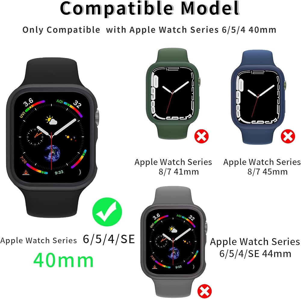 Compatible Models: Compatible with Apple Watch Series 9/8/7 45mm. Please confirm the size of watch carefully before buying. NOTE: Our case does not provide tempered glass screen protector