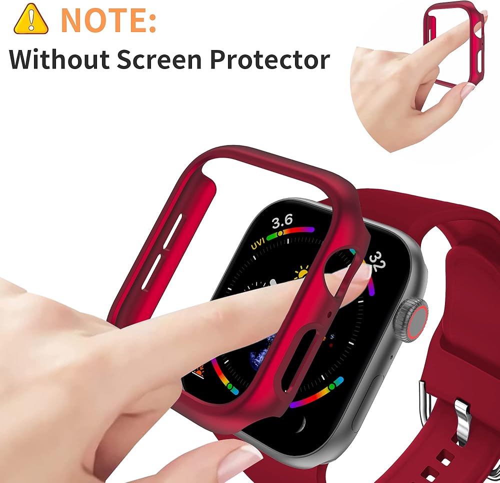 Case Frame Only : Really solve your concerns about touch screen problems. No worry about the mist on the screen caused by the sweat after a workout , or temperature difference after coming back from outside. In this way, when you are exercising, take on this watch case, your Apple Watch Series 9/8/7 45mm can get a better protection. (Not Included the Screen Protector)