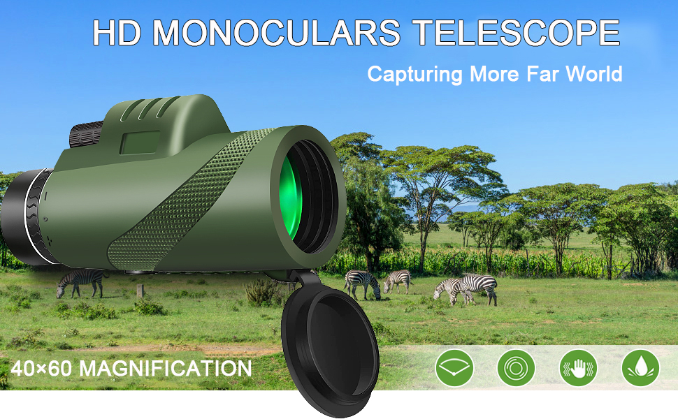 【Waterproof & Fog Proof】Our zoom monocular is compact and sturdy body make it withstand the heavy weather, the mirror is full of the high-purity nitrogen, waterproof and antifogging.