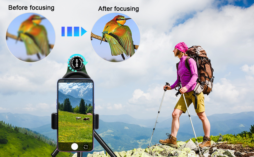 【High Definition and Super Bright View】10X Magnification and 60mm object lens diameter, Phone telescope with FMC & BAK4 prism lens, which can greatly reduce light loss and get greater magnification with a brighter and clearer field of view.