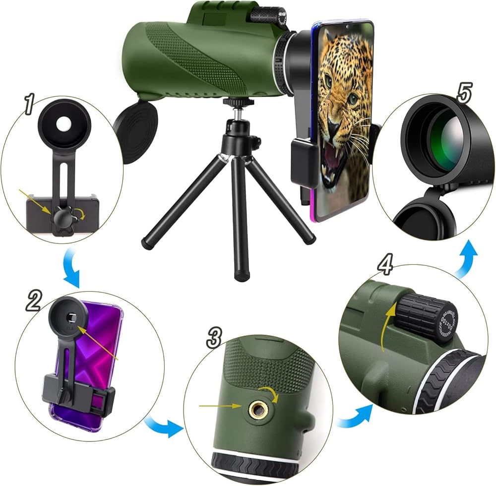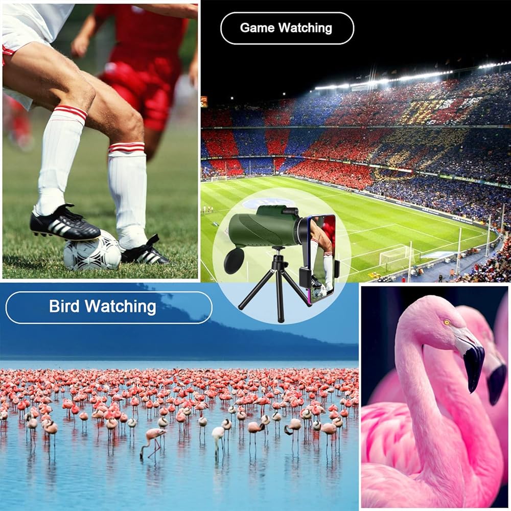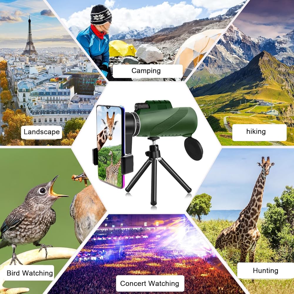 【New Tripod and Phone Hold】Compact monocular comes with 2023 new upgraded more stable tripod and phone hold, making your using experience more comfortable. The phone hold is stabilize and easy to install with any model of smartphone.