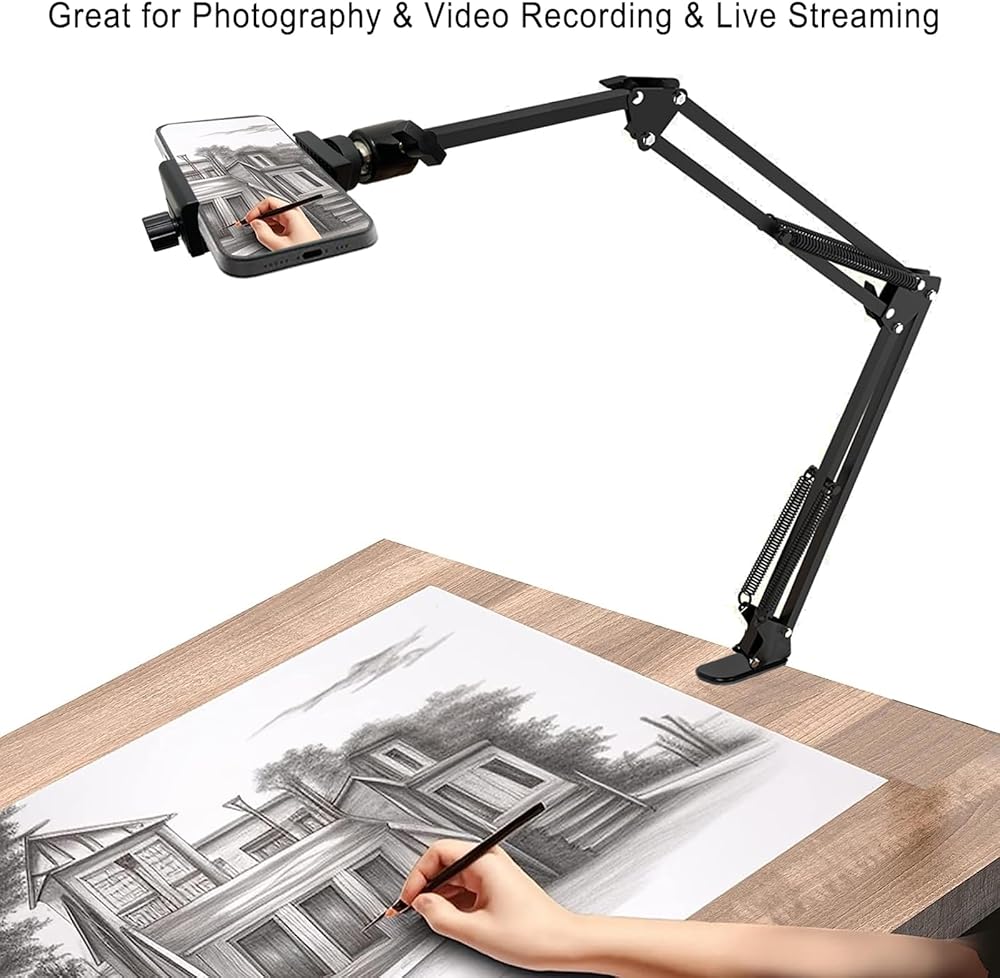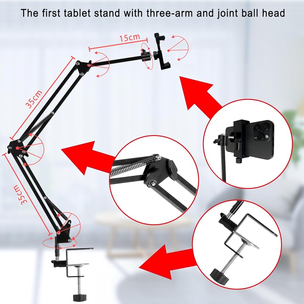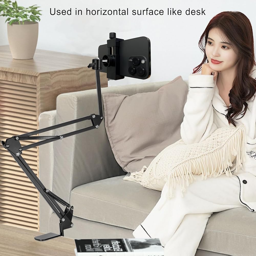 【Perfect Companion for Bed Entertainment】Sturdy mechanical aluminum cell phone arm stand is equipped with super strong spring to hold up more weight (MAXIMUM LOADING: 800g),To free your hands when watching phones in bed in winter.