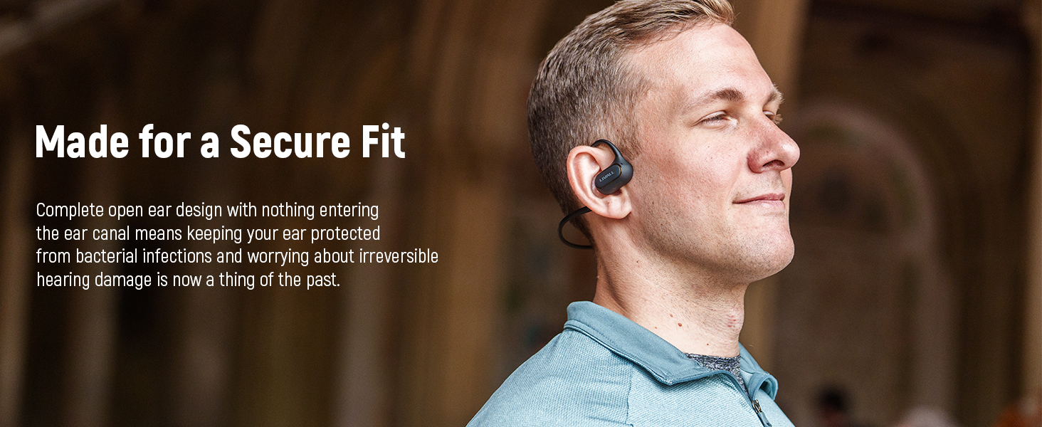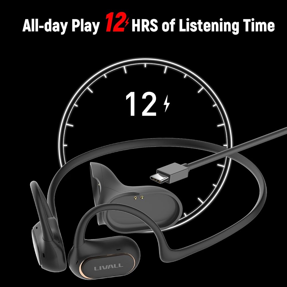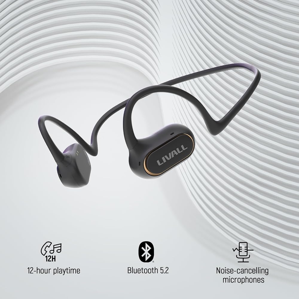 [Comfortable Open-Ear Headphones]: LIVALL open-ear headphones sit in front of your ears leaving them open; Uses a diaphragm speaker to eliminate that uncomfortable vibration from bone conduction, ensuring you remain aware of what's going on around you.