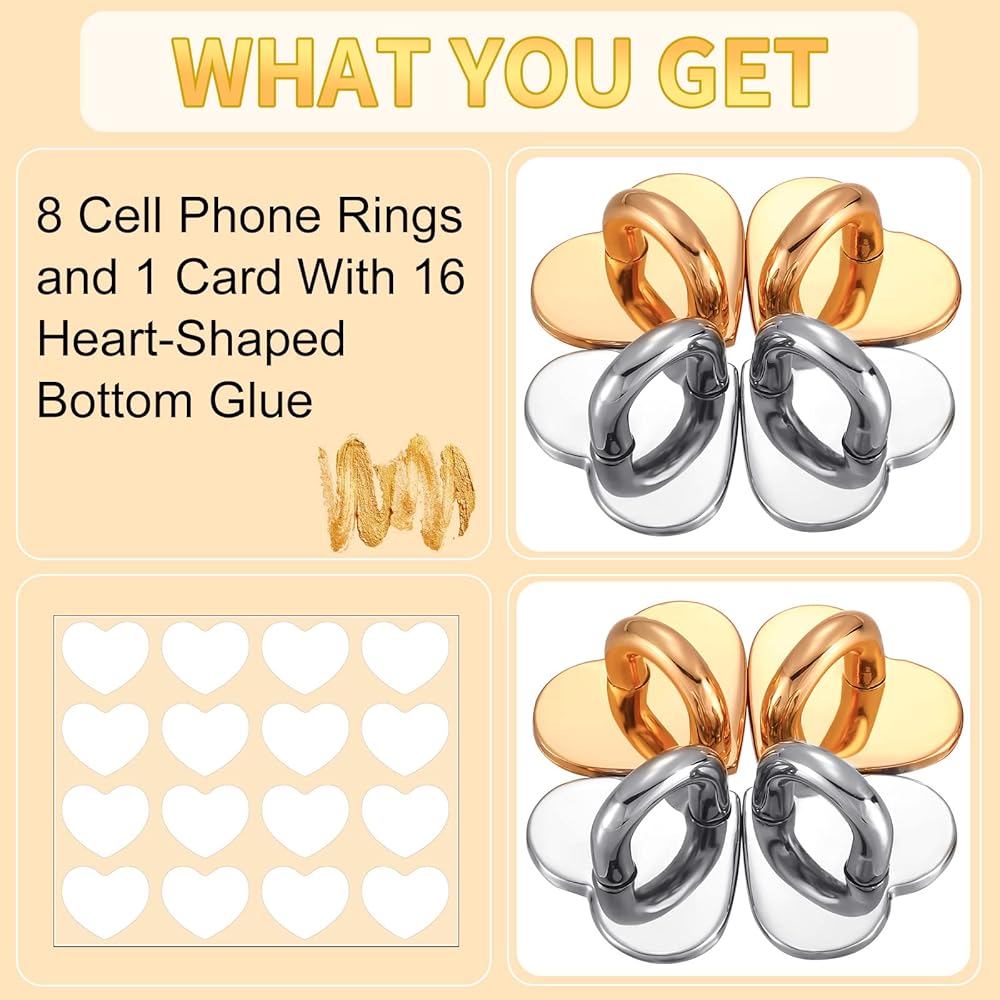 Rich in Quantity and Color: the package comes with 8 phone rings for fingers, abundant quantity and bright colors to meet your mobile phone decoration needs; In addition, 16 pieces of acrylic bottom stickers are also prepared for you, so it is convenient for you to decorate the phone anytime and anywhere