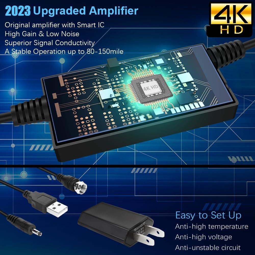 800 Miles Range TV Antenna Free Channels, HDTV Digital Antenna Amplifier, Ultra HD 4K HDR 1080P Powerful TV Signal Booster for Smart TV/Old TV 32FT Cable Indoor (Adapter Included)