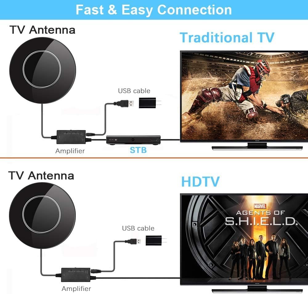 All Free Channels: Our HD Antenna is able to receive 600 miles ranged TV channel gound wave signal, supporting 1080P and 4K Ultra HD for digital smart TV. ABC, CBS, NBC, PBS, Fox, HBO, Univision, HSN etc. are available for free, including news, talk shows, TV series, sports. Save your monthly cable bills now!