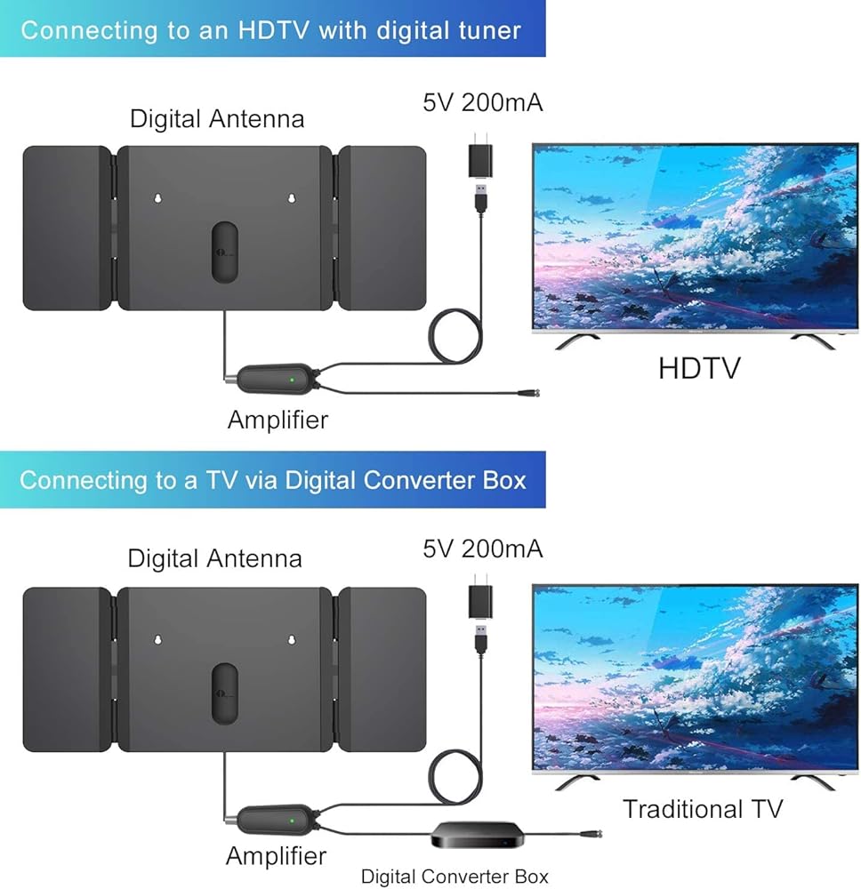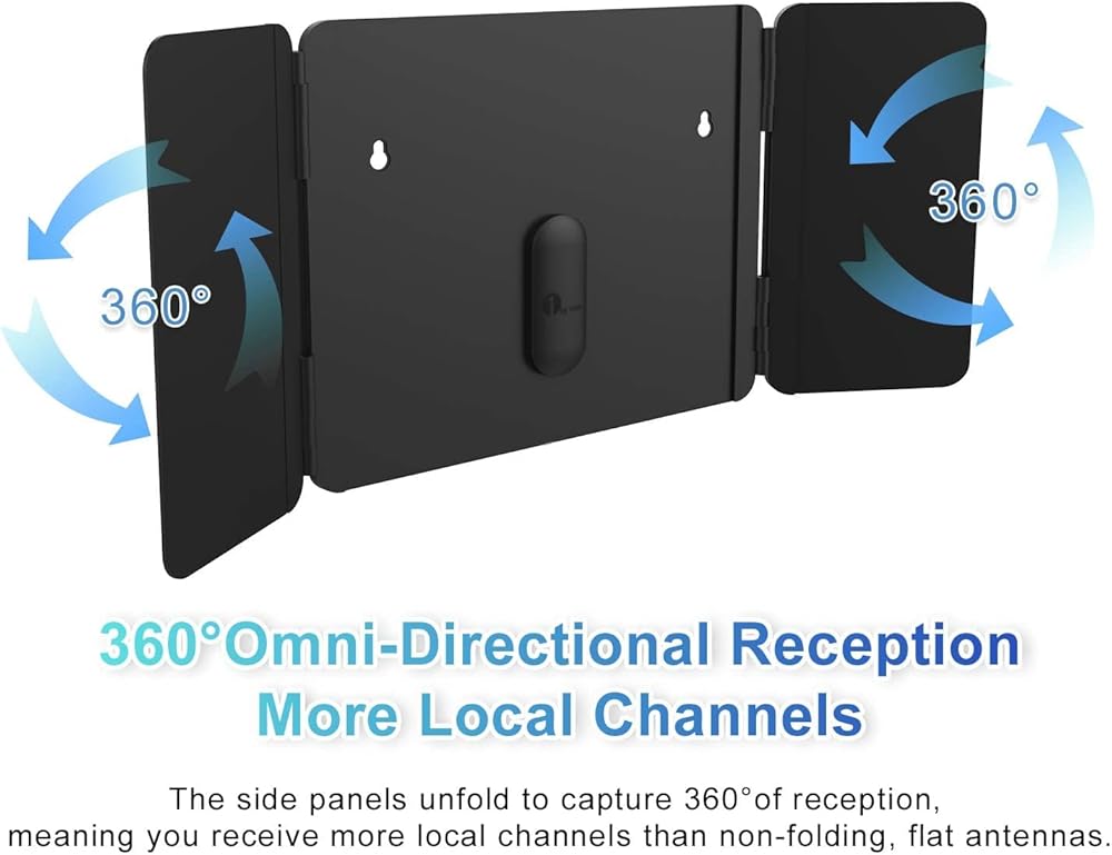 ✅ Unique foldable indoor design - Audio & Video Antennas better so your viewing experience is above the rest! This new antenna's side panels fold open and close to allow for 360° of reception capture unlike competing simple flat indoor antennas This means more channels expanded range and more solid signal reception The 19 7 inch foldable design is 7 8 inches larger than other indoor antennas to deliver a much better viewing experience.