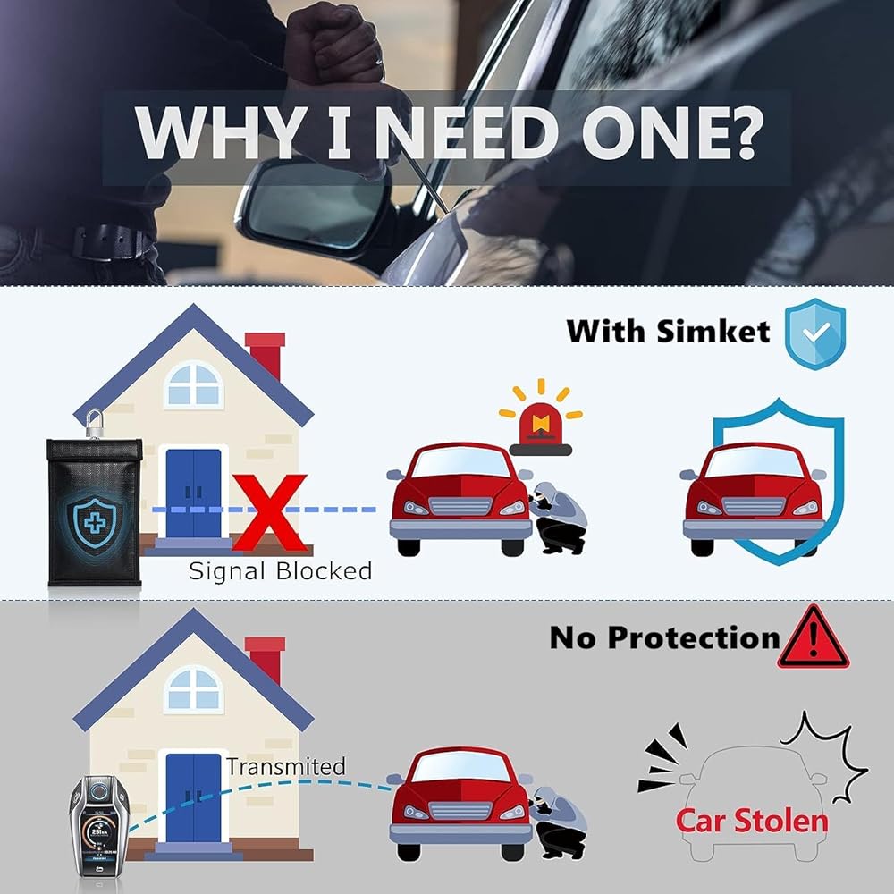 👍 ONE STEP TEST - Simket can easily pass any test by yourself. Anytime the car key in the bag and car locked, no one can opend the door or start your car. Protecting your car at all times.