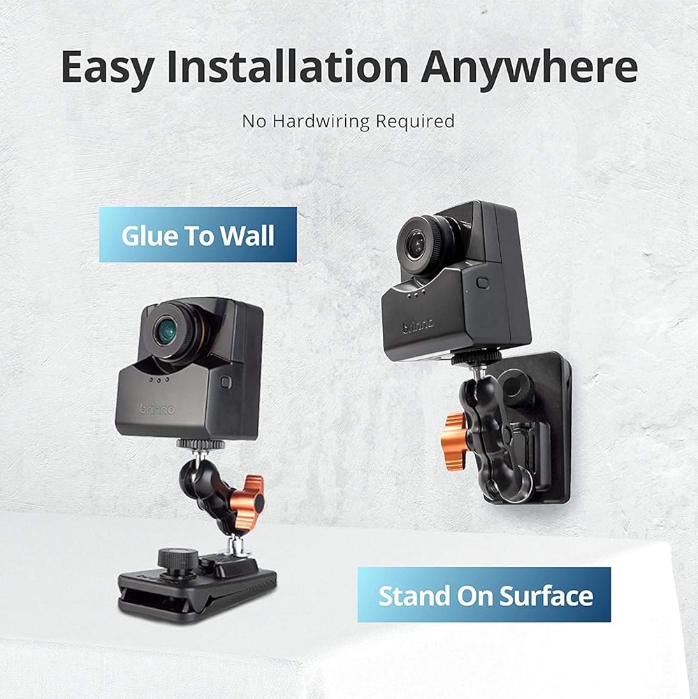 [ADAPTABLE ACCESSORIES] Easily shoot anywhere with super adaptable mounting accessories to make the camera stand on a surface, clip to a sturdy object, or glue to a wall. Use the mount adjuster to set your ideal camera height and view angle.