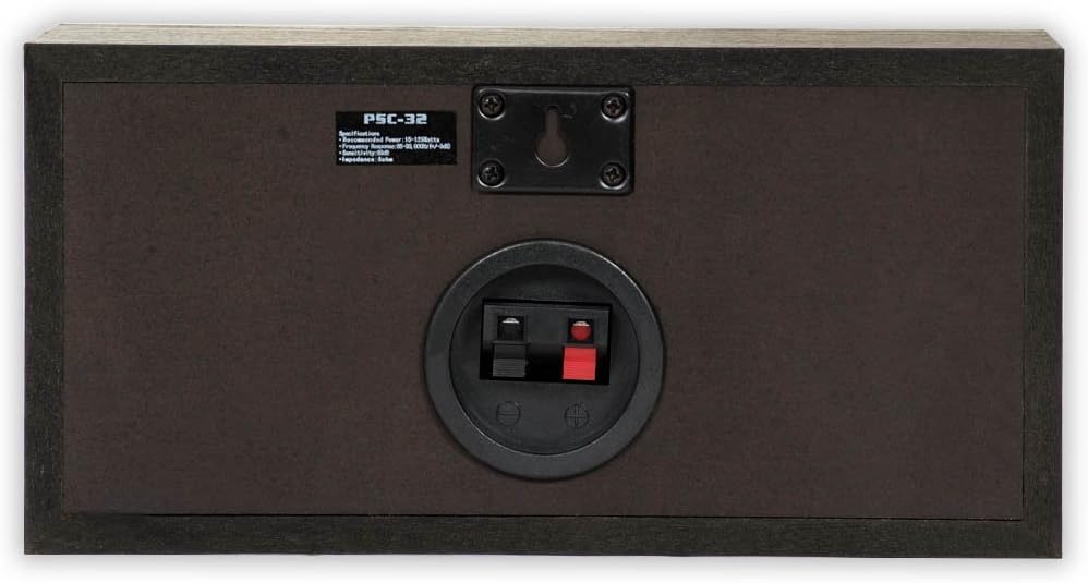 The Acoustic Audio by Goldwood PSC-32, Black center channel speaker, pulls you into the movie action and with clean, accurate dialogue and robust sound effects. This versatile speaker also does a great job with multichannel music and video game soundtracks. Its two-way design helps it deliver clear, room-filling sound. The PSC-32 includes two 3" Cone woofers which allows it to handle 125 watts of power and provide precise, powerful sound across the entire audible spectrum. The Digitally tuned bass reflex enclosure fights internal vibrations that can compromise performance and a Black ash wood veneer finish gives this speaker a warm, refined look, making it an attractive addition to just about any room. All of the speakers in the PS Series are voice-matched, making it easy to build a system that fits your room and listening preferences.