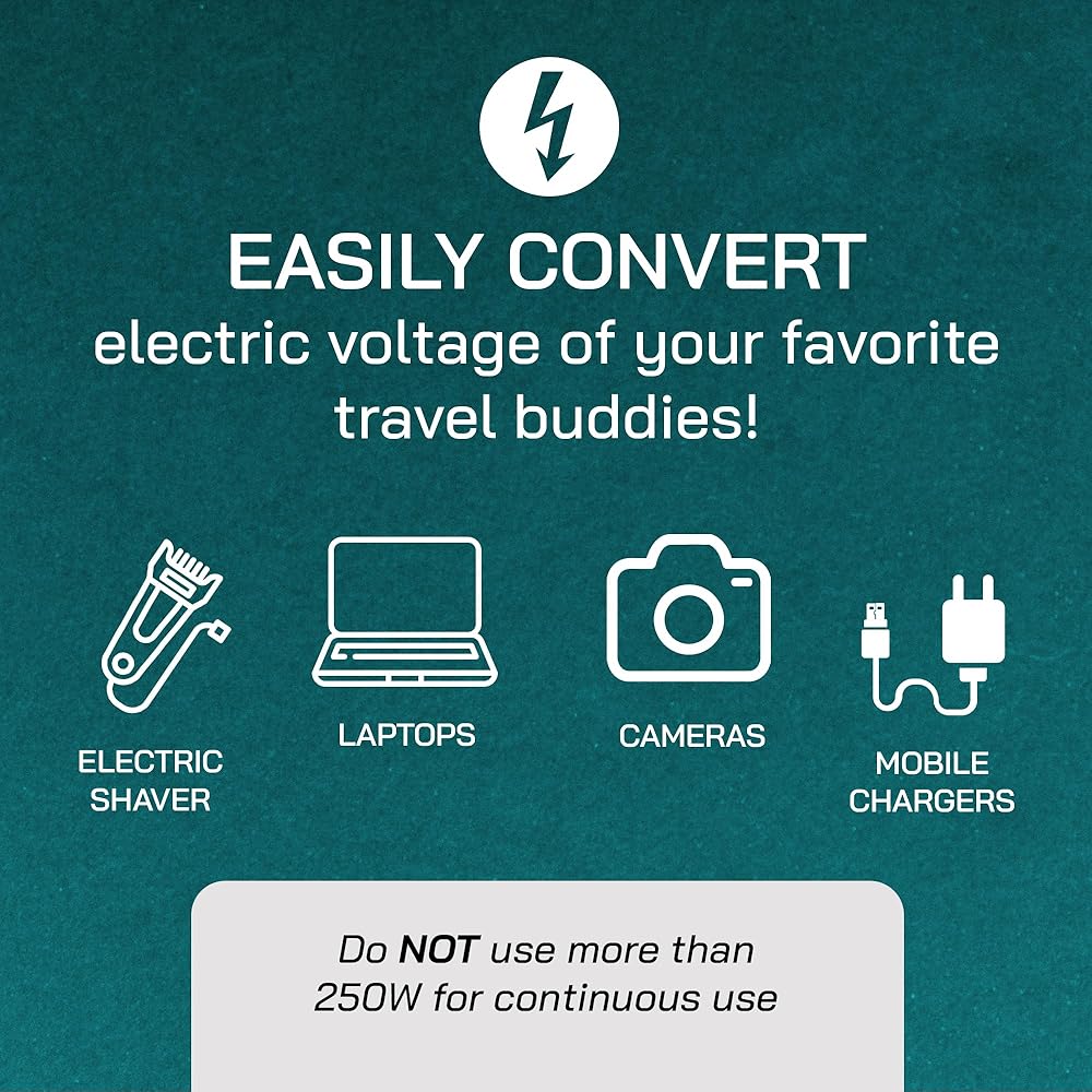 500-Watt Capacity with Thermal Fuse Protection: This travel voltage converter has a maximum capacity of up to 500 watts, protects the converter from overheating overload & ensuring your devices receive adequate power while being protected by thermal fuse technology.