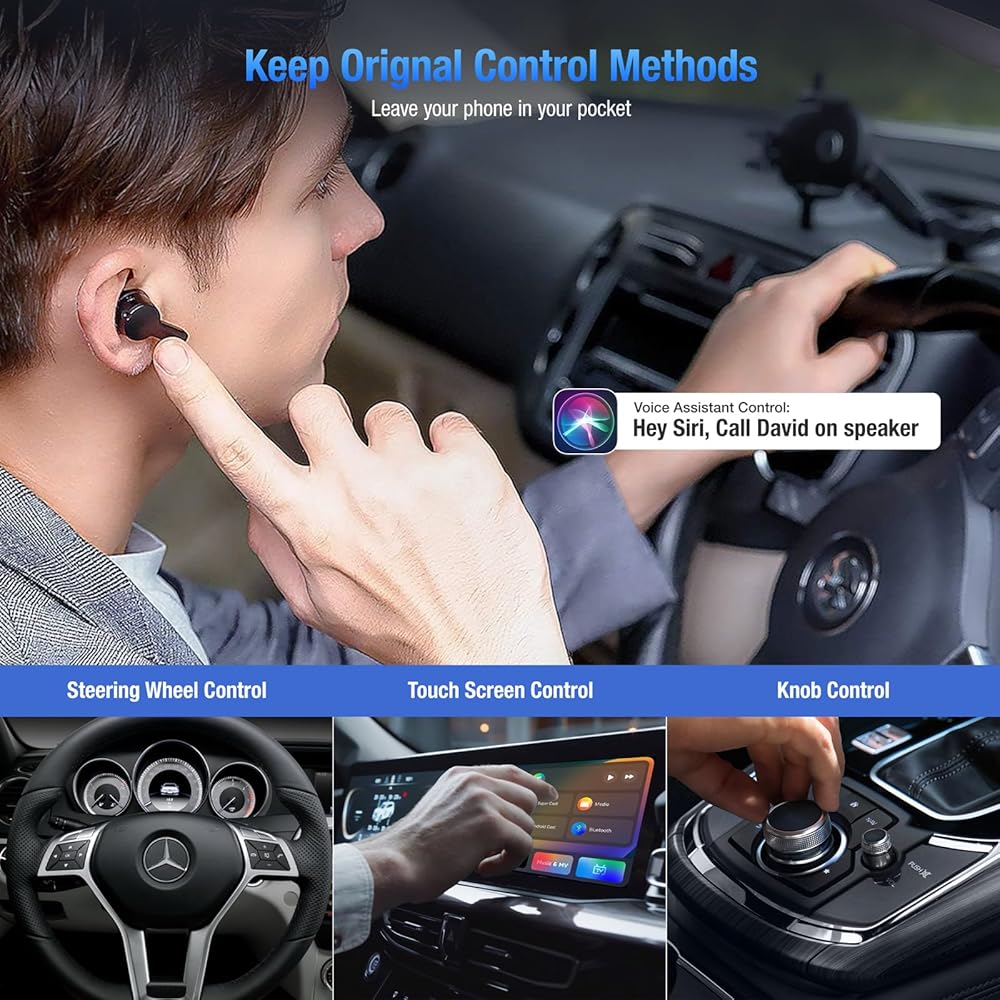 Keep Original Car Control Mode and Extra Bluetooth - This Carplay Ai box retains all the control modes of the original car, such as voice control, Steering wheel control, knob control and touch control, there is almost no difference in the experience of using wired carplay. Even if you're not connected to carplay or android auto, you can still connect to the ai box's additional Bluetooth to make sure you don't miss any calls.