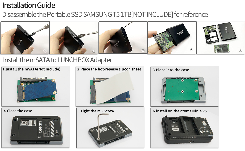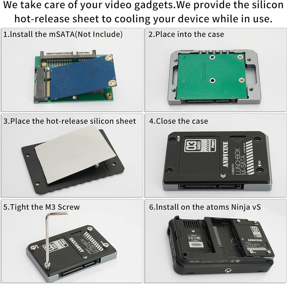 Special designed case for Ninja V Recorders. You can turn the mSATA SSD as the SSD for Atoms NINJA with the help of the case and adapters(Include)