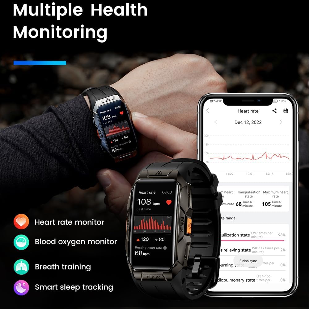 🏊♂️ 70 Sports Modes, Multiple Health Monitors- Equipped with the cutting-edge VP60 bio-tracking optical sensor, the fitness watch achieves unparalleled accuracy in monitoring 24-hour heart rate, blood oxygen, etc. With its built-in 70 sports modes and 6 Intelligent Sports Recognition, KOSPET TANK X1 assists you to unlock novel, exciting sport experiences. Collects and analyzes data in sports and health like your personal trainer.