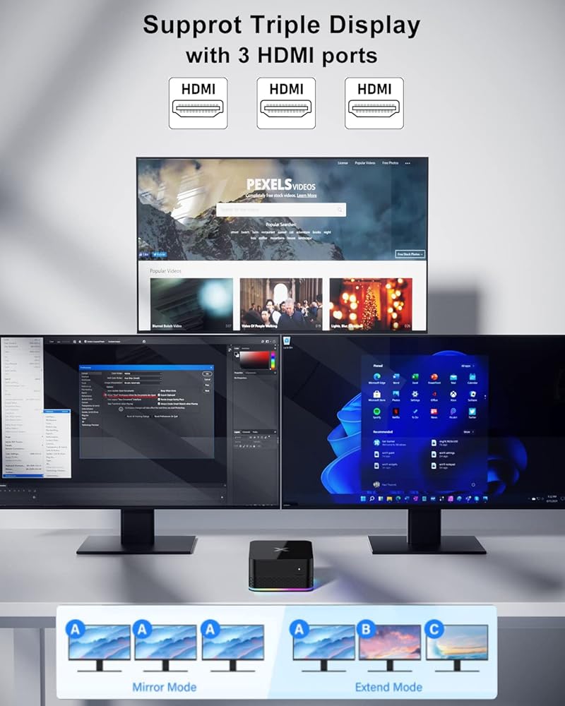 [Support 4K High-Definition]: The micro pc supports 4K ultra high-definition display technology, and connecting can present beautiful visual effects for you. Mini computer can support three 4K monitors for simultaneous display, simplifying and doubling your work efficiency, making it perfect for online courses, students, scaled conferences, or video streaming!