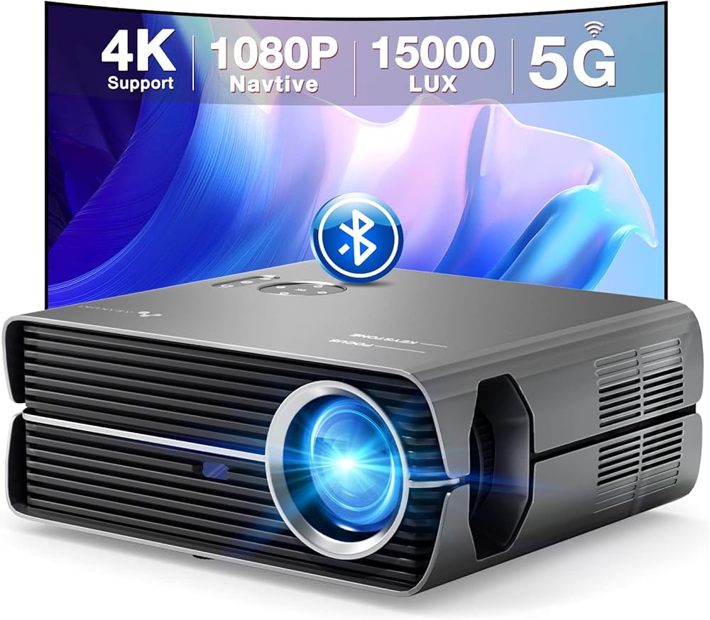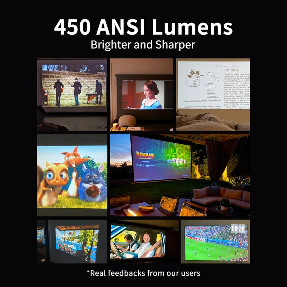 BRIGHTEST PROJECTOR EVER: 450 ANSI 15000 Lumens brightness, this full HD native 1920x1080 (Support 4k) projector utilizes bright LED light and TFT LCD display technology, much brighter than other 1080P wifi Bluetooth projectors. This makes it possible to watch your favorite movies even in the daytime(during sundown)