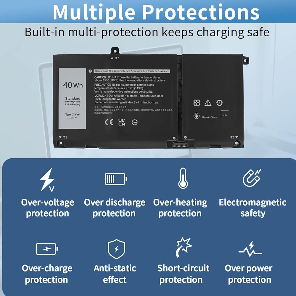 SECURITY & RELIABILITY: Our 40Wh XCMRD 14.8V batteries for Dell are assembled from top quality material and circuit boards to ensure fast charges and low power consumption, 100% New from Manufacturer, Overcharge and Overdischarge Circuit Protection, Over-temperature and Short-circuit Protection, up to 500 recharge cycles over the life of the battery, meet OEM standard. You can buy it with confidence and use it safely .