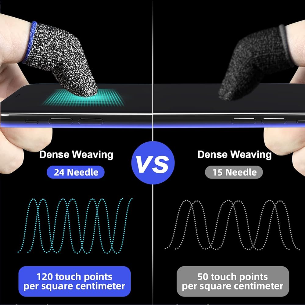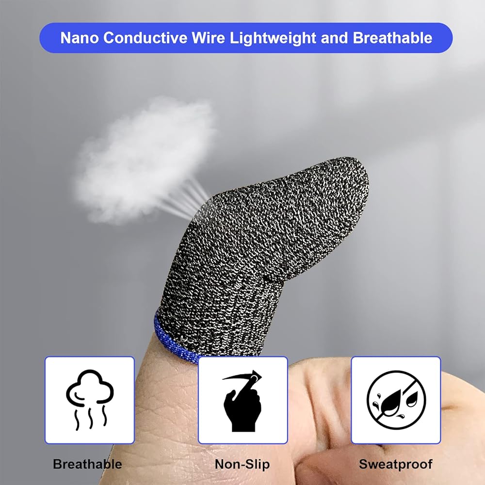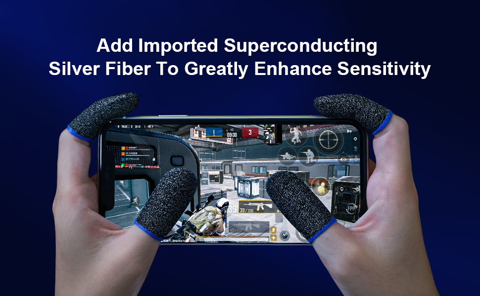 مواد عالية الجودة: سرير أصابع اللعبة مصنوع من ألياف فضية، وهي أكثر راحة ومتانة من مهود الأصابع النسيجية العادية؛ يمكنه عزل عرق اليد عن ملامسة الشاشة، وتحقيق التشغيل الحساس، وهو أكثر راحة في الارتداء من الأيدي العارية.