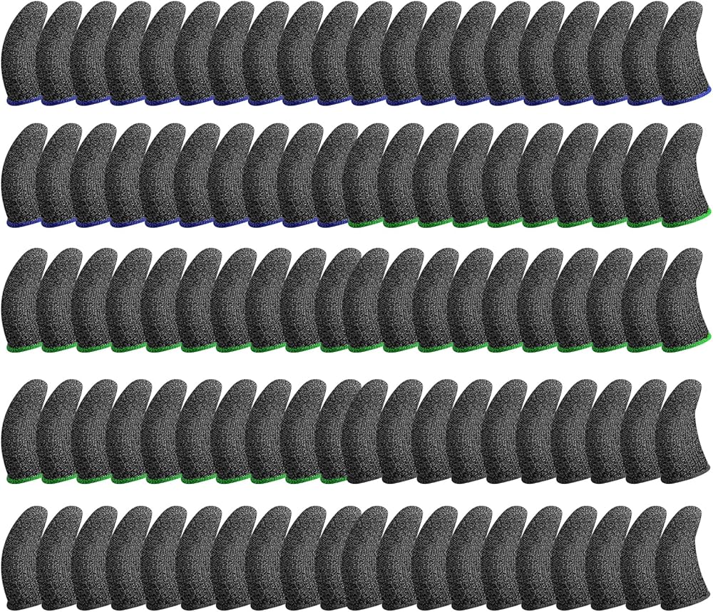 100 قطعة من أكمام أصابع الألعاب المصنوعة من الألياف الفضية، وأكمام أصابع الإبهام للتحكم في الألعاب، وأغطية أصابع قابلة للتنفس ومضادة للعرق، ومتوافقة مع معظم الهواتف المحمولة