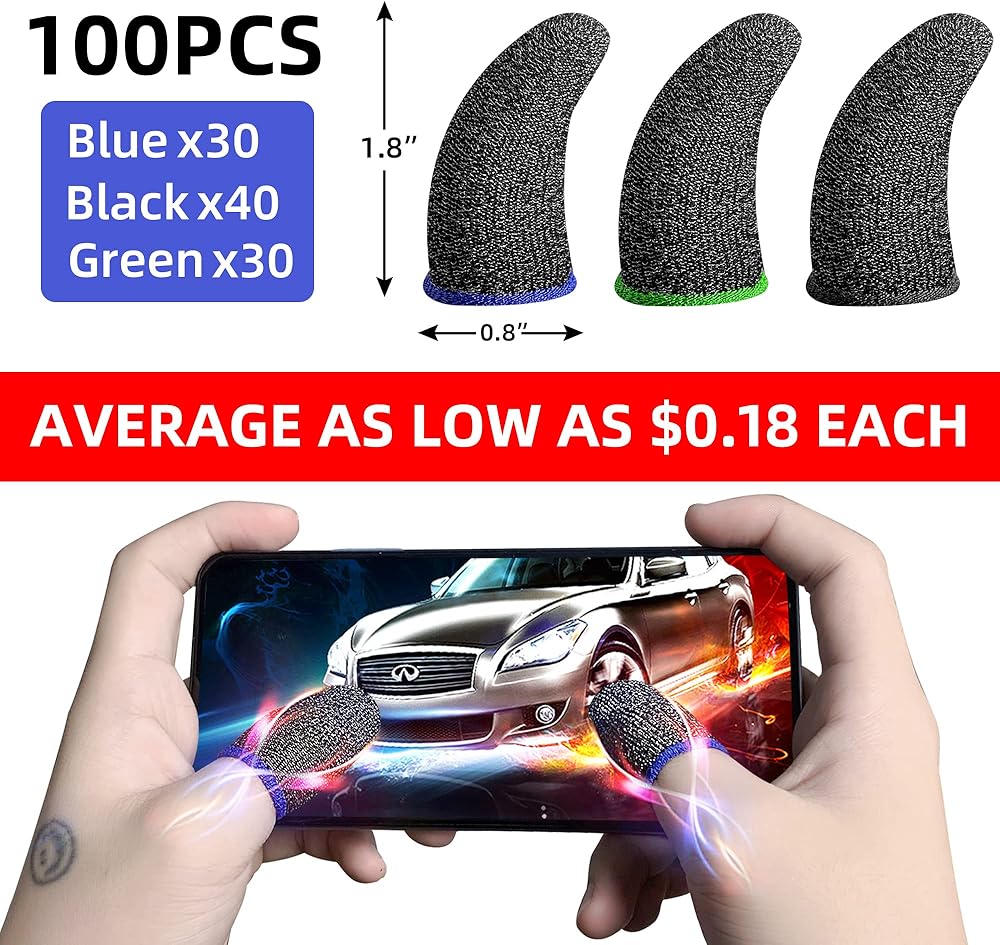 Package includes: 100 pairs of finger sleeve for gaming