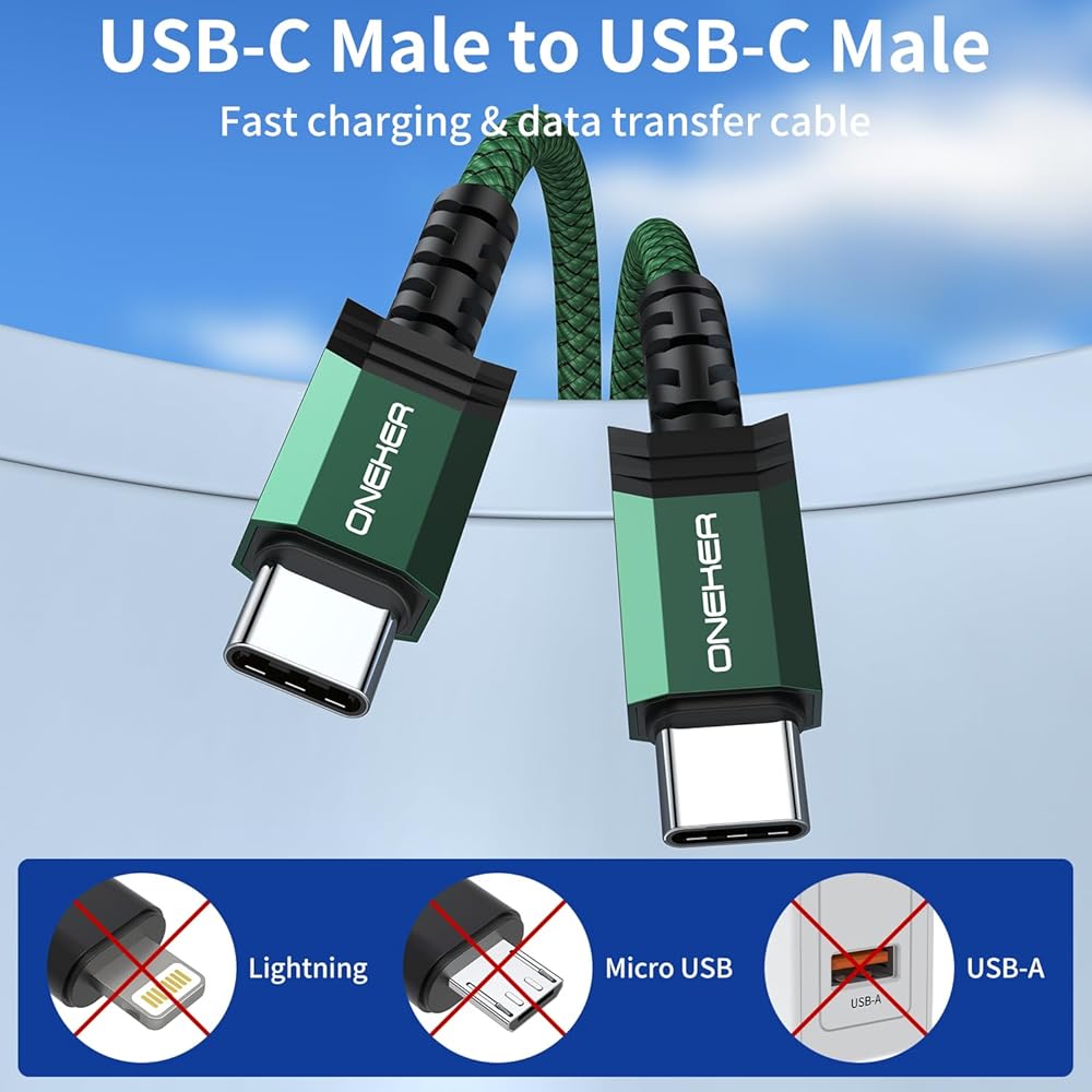 【Compatibility List】This type C to type C cable compatible with iPhone 15 15 Pro/15 Pro Max Samsung Galaxy S23 S23+ S23 Ultra/S22 S22+ S22 Ultra/S21 S21+ S21 Ultra/Note10/Note 10 Plus/Note 20 S10/S10e/S10+/S9+/S8+, Google Pixel XL/2/2XL/3/3XL/3a/4 XL, Nexus 6P 5X, iPad Pro 2020, MacBook 12 inch, MacBook Pro 13", MacBook Air 13", Google Chrome