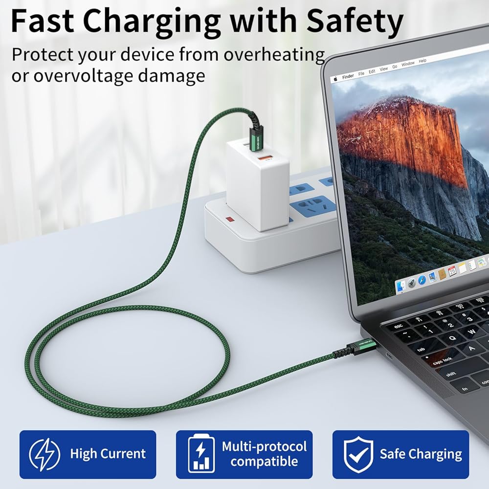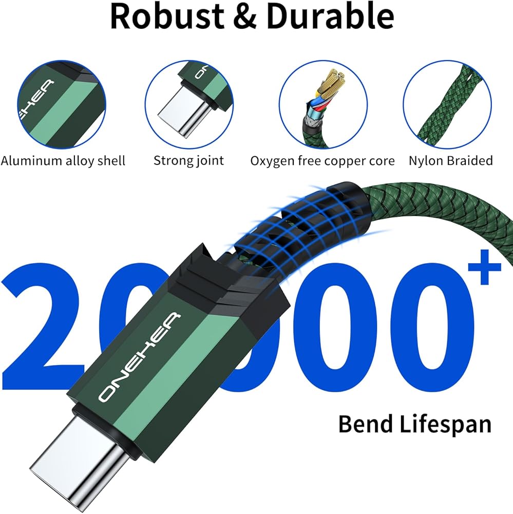 【Military grade material】Strong fiber, the most flexible, powerful and durable material, Premium nylon braided cable adds additional durability and tangle free. Special Strain Relief design can bear 20,000+ bending test.