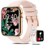 WOMEN SMARTWATCH: The fitness watches for women are equipped with a 1.85 inch 240x286 resolution ultra-clear full-touch color screen with clear picture quality and smooth touch. More than 200+ free watch faces to choose from, and you can also choose your favorite pictures (your pets, your family ) as your own watch faces. This fashion digital watch has 2 bands (pink, white), which meet your different matches.