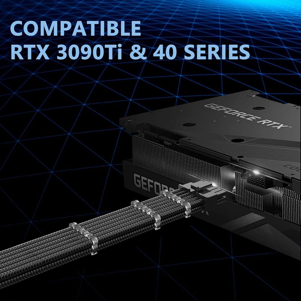 【Clean and tidy】This 4090 4080 and 3090ti special extension cable can perfectly replace the original large and thick power cord, the computer case is more beautiful, equipped with a cable comb, allowing you to easily achieve clean cable management and unified design