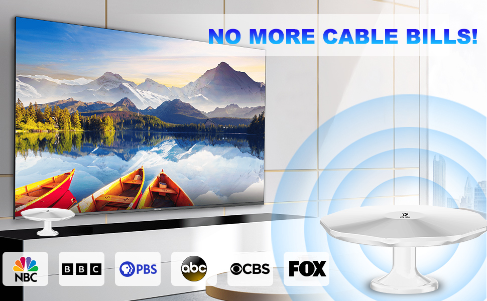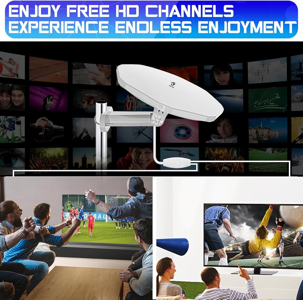 【Never Pay CABLE BILL】This Outdoor digital HDTV antenna will save you the high cost of depending on cable companies for your TV needs. Our HD antenna can receive FULL HD channels like ABC, CBS, NBC, PBC, Fox, and so on. With an amplified TV antenna, start to access all of the news, sitcoms, kids' and sports programs!