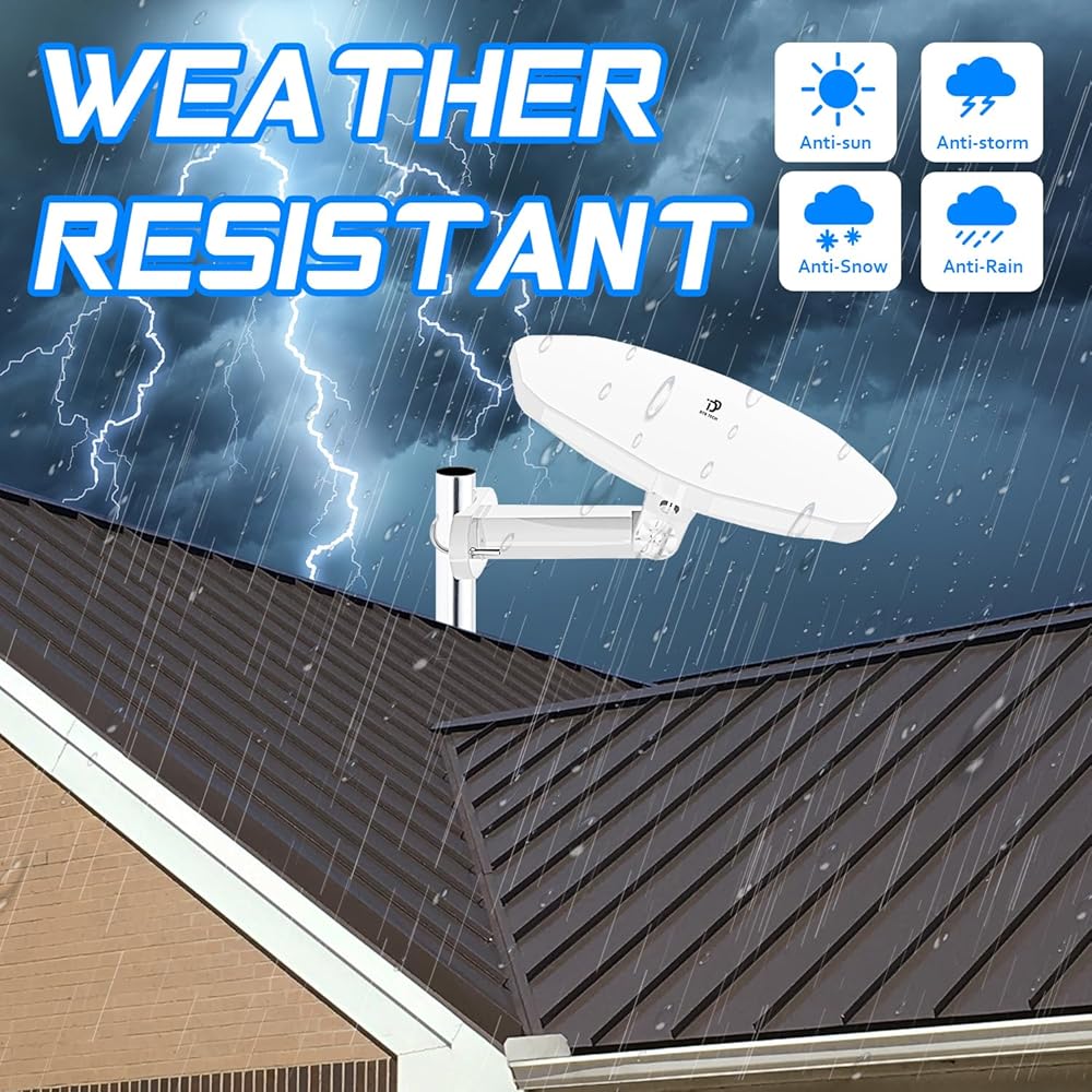 【360° Omni-Driectional Reception】- Receive UHF/VHF signals from all directions while providing clear 4K pictures, no need to rotate, no need the remote control as traditional huge outdoor antennas. No need to worry about local weather as it's made of moisture-proof and flame retardant materials. Say goodbye to endless adjustments!