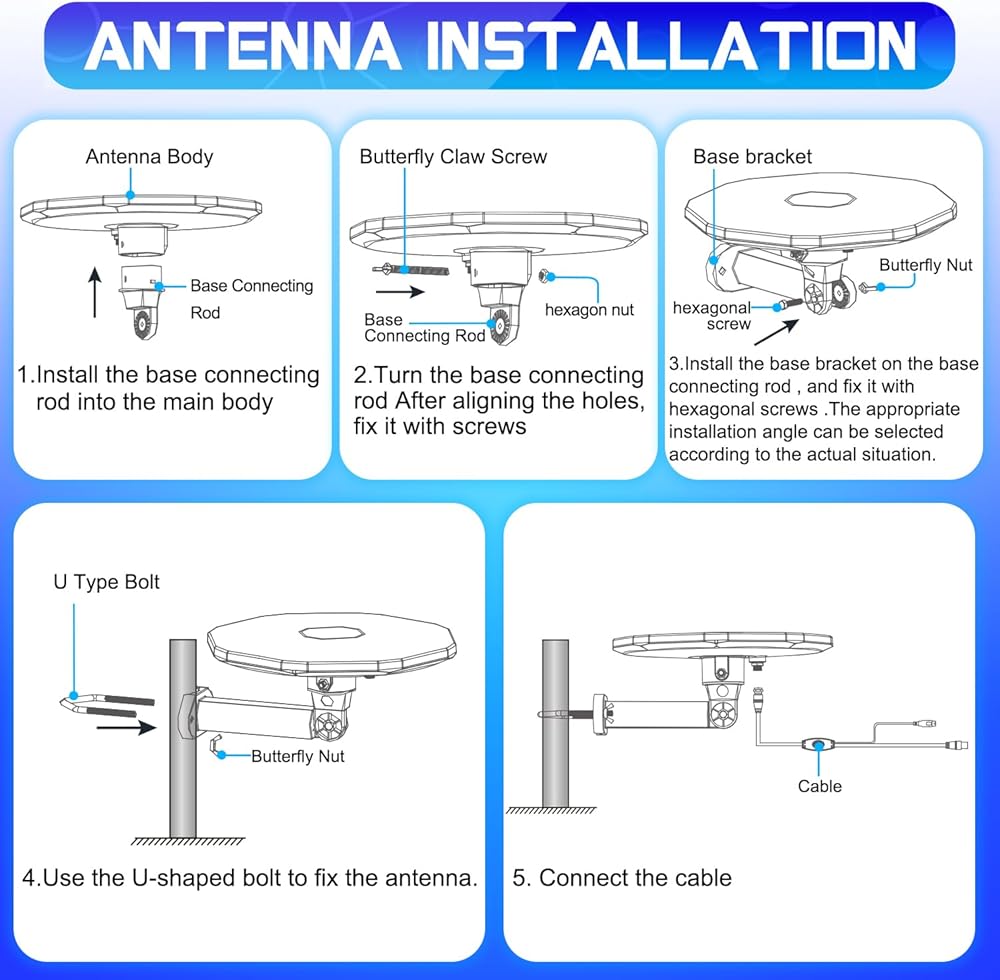 【Long Range Digital Amplified Outdoor TV Antenna】- Exclusive Smart pass Amplifier technology improves better reception than the old version and provide much better signal reliability on windy or rainy days. Please first find out where the local broadcast towers are in your area.