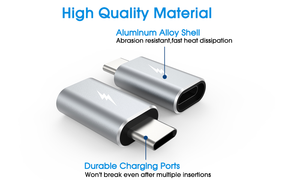 【Durable Material】Aluminum alloy shell makes it a durable and heat dissipation lightning to usbc-c adapter. Every adapter withstands strict test of multiple plugs and unplugs before selling to ensure its long life span without breaking, is completely safe to use and won't over-heat or over-charge.